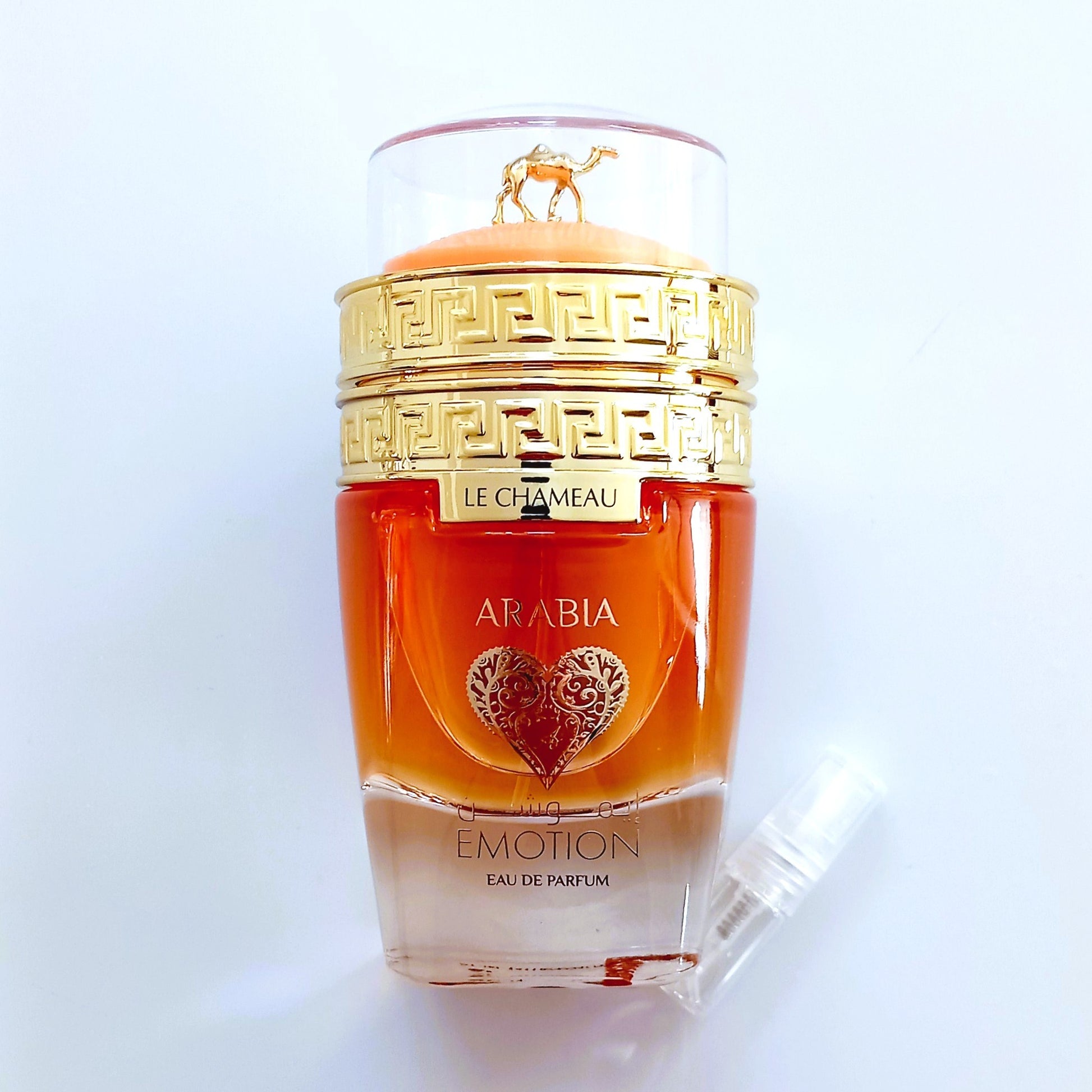 Décantation de 2 ml (échantillon) avec flacon-pompe du parfum « Arabia Emotion » de la marque Le Chameau